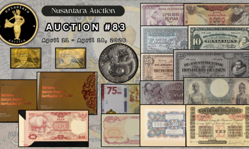 Featured Lot [LOT 218 NA#83] TUVALU, 2 DOLLARS SILVER COIN DRAGON HIGH RELIEF NGC PF 70 ANTIQUED 2017SOLD AS SEEN ON THE IMAGES View Details Featured Lot [LOT 165 NA#83] TOP POP NETHERLANDS INDIES, 30 GULDEN BACK PROOF PMG CHOICE UNC 64 1919-21 View Details Featured Lot [LOT 22 NA#83] INDONESIA, PERANGKO EMAS 24K 3GR PERINGATAN HAUL BUNG KARNO 2001 SERIAL# 0425/2000 View Details Featured [LOT 34 NA #83] INDONESIA, 1.000-100.000 RUPIAH AAA WITH ALL SAME SERIAL NUMBER BI 2022 SERIAL # AAA000401 View Details Featured NUSANTARA AUCTION #83 View Details Featured Lot [LOT 168 NA#83] RARE INDIA, 10 RUPEES PMG CHOICE VERY FINE 35 1916-19 SERIAL # ZC/31 89825SOLD AS SEEN ON THE IMAGES View Details Featured NUSANTARA AUCTION 83 LIVE AUCTION View Details Upcoming Auctions View All Auctions Sat7MarLive AuctionNUSANTARA AUCTION #78VIEW DETAILS →Sat18AprLive AuctionNUSANTARA AUCTION #83VIEW DETAILS →Featured Lots View All [LOT 218 NA#83] TUVALU, 2 DOLLARS SILVER COIN DRAGON HIGH RELIEF NGC PF 70 ANTIQUED 2017SOLD AS SEEN ON THE IMAGES View Details [LOT 165 NA#83] TOP POP NETHERLANDS INDIES, 30 GULDEN BACK PROOF PMG CHOICE UNC 64 1919-21View Details [LOT 22 NA#83] INDONESIA, PERANGKO EMAS 24K 3GR PERINGATAN HAUL BUNG KARNO 2001 SERIAL# 0425/2000View Details From The Shop View All Voutilainen[vcex_woocommerce_template part="loop/price" font_size="21px" font_weight="300"][vcex_woocommerce_template part="loop/add-to-cart"]Gold, Ruby and Diamond Brooch[vcex_woocommerce_template part="loop/price" font_size="21px" font_weight="300"][vcex_woocommerce_template part="loop/add-to-cart"]Dining Table by Gio Ponti[vcex_woocommerce_template part="loop/price" font_size="21px" font_weight="300"][vcex_woocommerce_template part="loop/add-to-cart"]Brooklyn Gang (group of teenagers in restaurant), New York[vcex_woocommerce_template part="loop/price" font_size="21px" font_weight="300"][vcex_woocommerce_template part="loop/add-to-cart"] Welcome to Nusantara Auction We are a leading auction house in Indonesia focuses on Numismatic items such as collectible banknotes and coins. Led by a well experienced auctioneer and strong management, we provide a strong platform for the auction process. About Us Contact Us Have an Item for Sale? If you have an item that you think might be of interest for us, please send it over for a free evaluation. Consign An Item Bid from Anywhere. Manage your bids from the convenience of your phone and never miss an auction. Download for iOS Download for Android