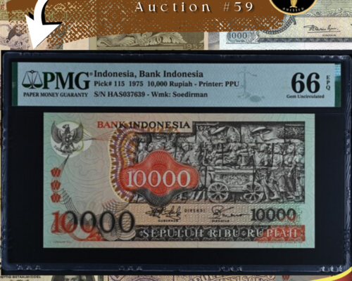 [LOT 365 NA#59] INDONESIA, 10.000 RUPIAH BARONG PMG GEM UNC 66 EPQ 1975 SERIAL# HAS037639