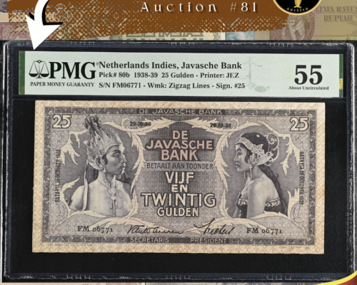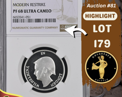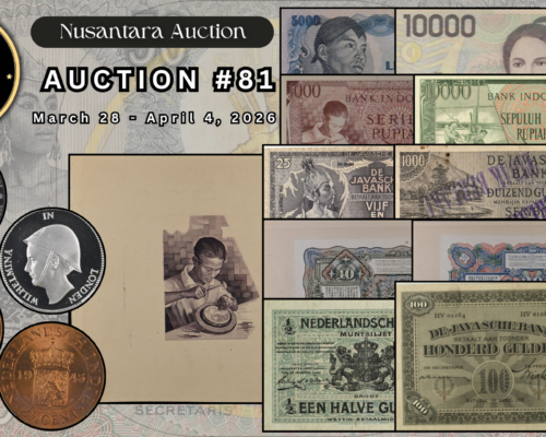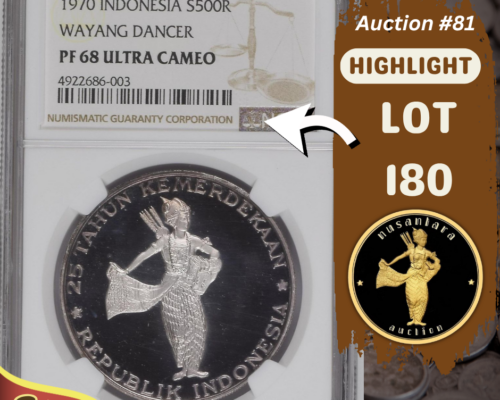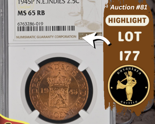 [LOT 180 NA#81] INDONESIA, 500 RUPIAH WAYANG DANCER NGC PF 68 UC 1970SOLD AS SEEN ON THE IMAGES View Details [LOT 179 NA#81] NETHERLAND, 1 GULDEN WILHELMINA NGC PF 68 UC 1940View Details [LOT 177 NA#81] TOP POP NETHERLAND EAST INDIES, 2.5 CENT NGC MS 65 RB 1945PView Details [LOT 150 NA #81] TOP POP INDONESIA, 5.000 RUPIAH SOEDIRMAN PMG 67 EPQ 1968View Details [LOT 166 NA#81] RARE NETHERLNADS INDIES, 30 GULDEN BACK PROOF PMG CHOICE UNC 63 1919-1921SOLD AS SEEN ON THE IMAGES View Details NUSANTARA AUCTION 81 LIVE AUCTIONView Details [LOT 162 NA#81] NETHERLANDS INDIES, 25 WAYANG WAVEREN PMG ABOUT UNC 55 1838 SERIAL# FM06771View Details Past Highlights Featured lots are not always available. You can check our past highlights too. View All Highlights > Have an Item for Sale? If you have an item that you think might be of interest for us, please send it over for a free evaluation. Consign An Item