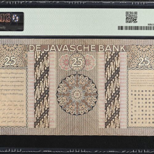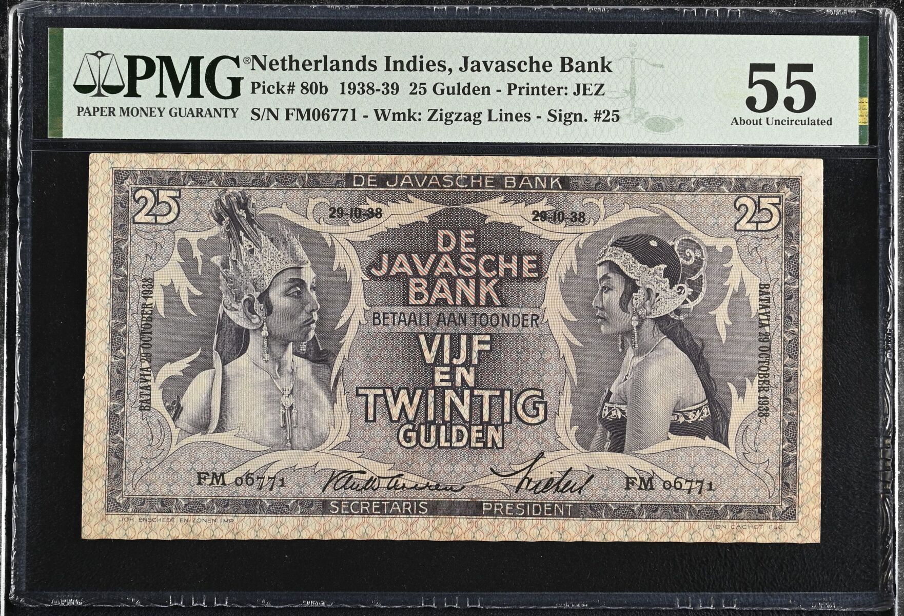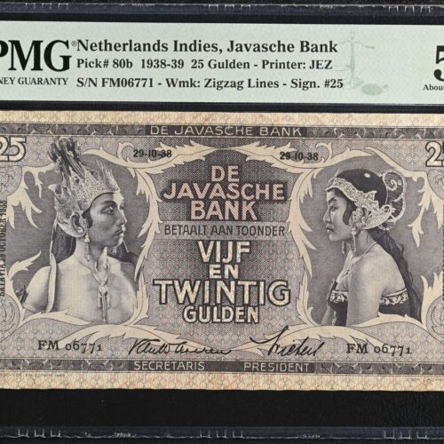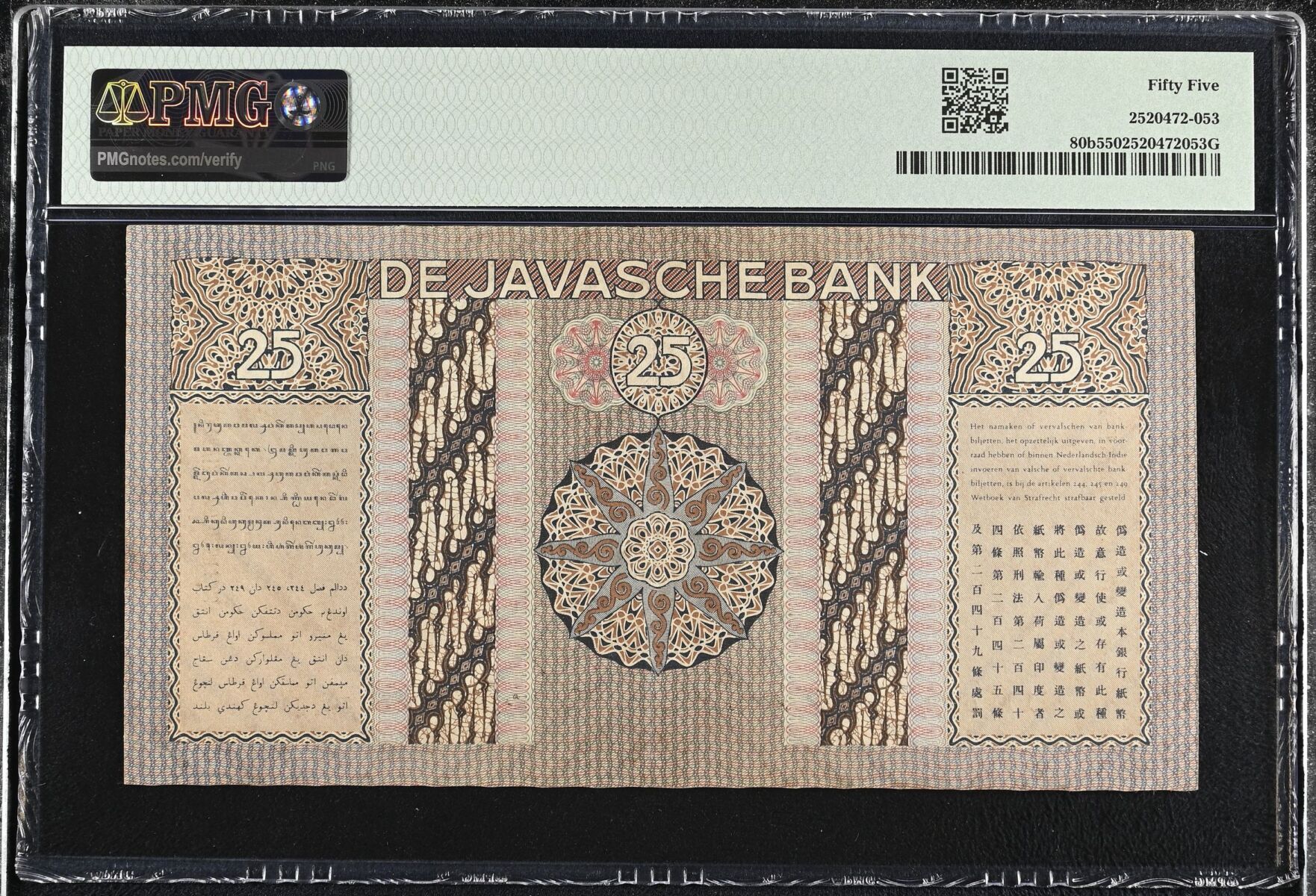 [LOT 162 NA#81] NETHERLANDS INDIES, 25 WAYANG WAVEREN PMG ABOUT UNC 55 1838 SERIAL# FM06771