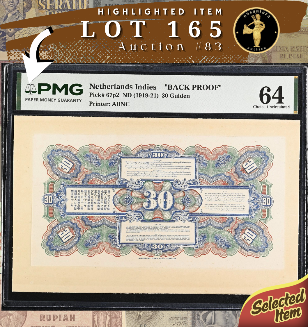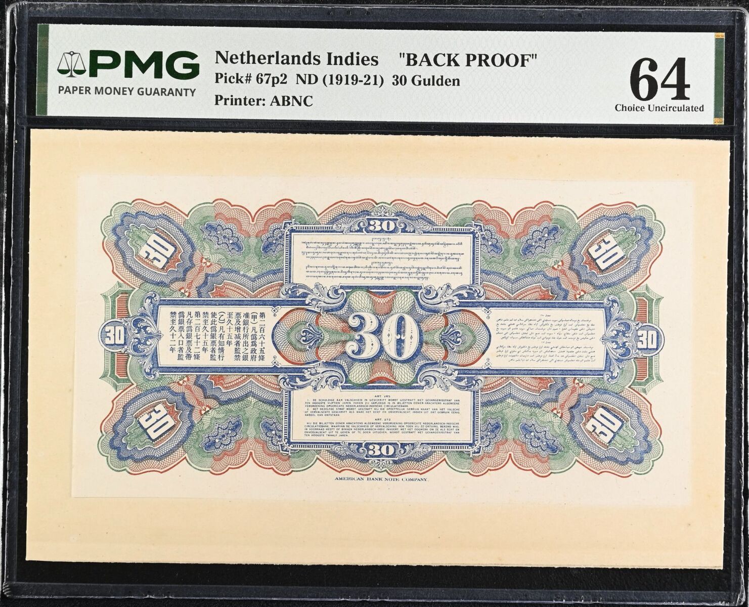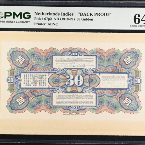 [LOT 165 NA#83] TOP POP NETHERLANDS INDIES, 30 GULDEN BACK PROOF PMG CHOICE UNC 64 1919-21