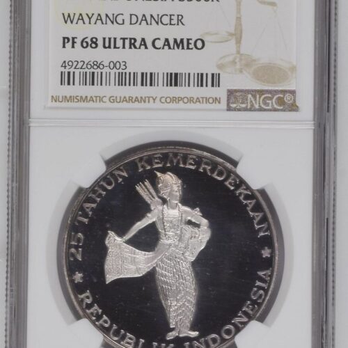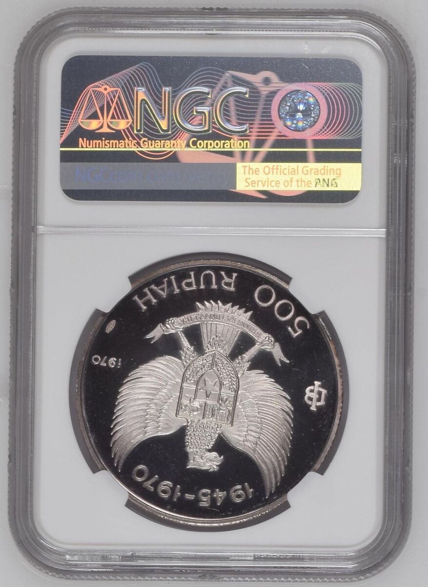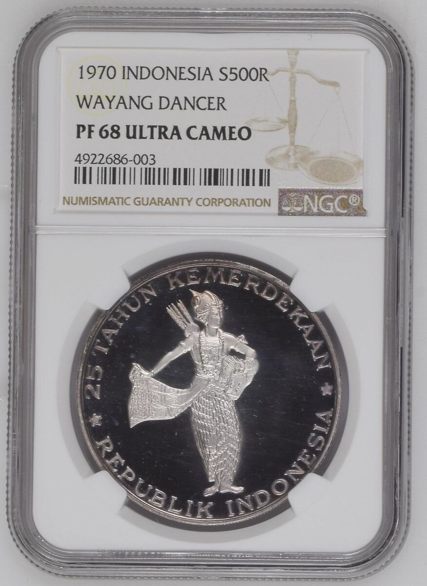 [LOT 180 NA#81] INDONESIA, 500 RUPIAH WAYANG DANCER NGC PF 68 UC 1970