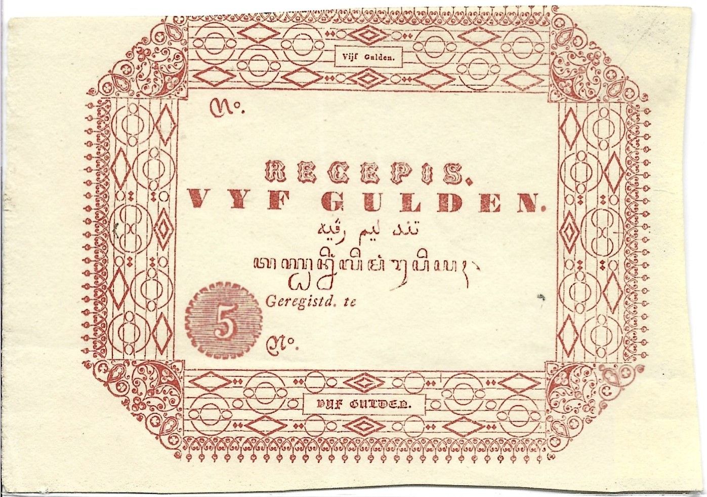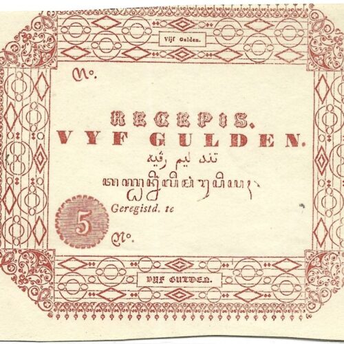 [LOT 245 NA #66] SCARCE NETHERLANDS INDIES, 5 GULDEN RECEPIS 1840