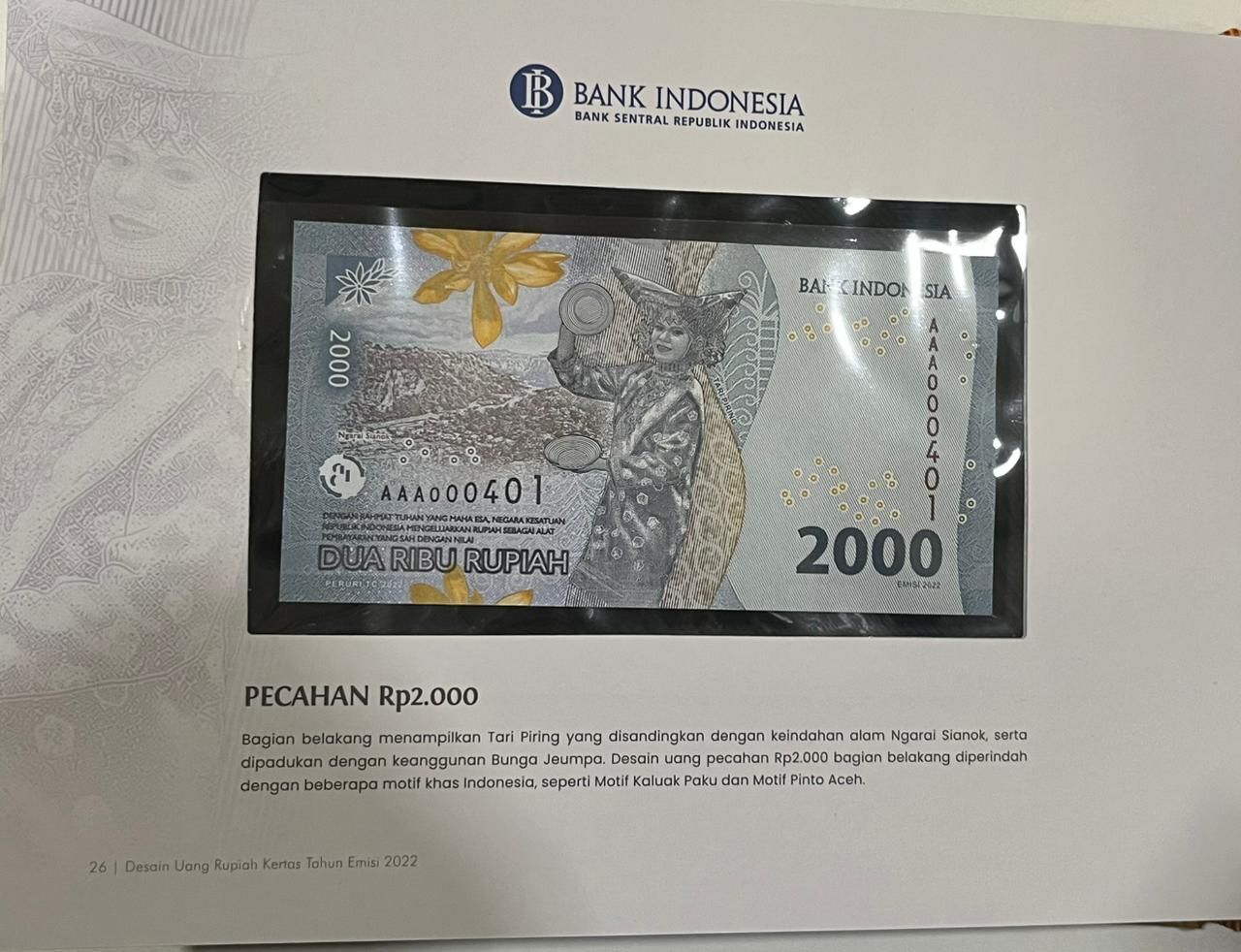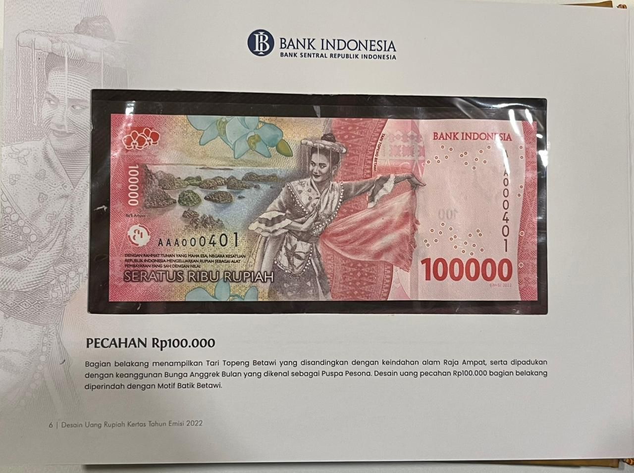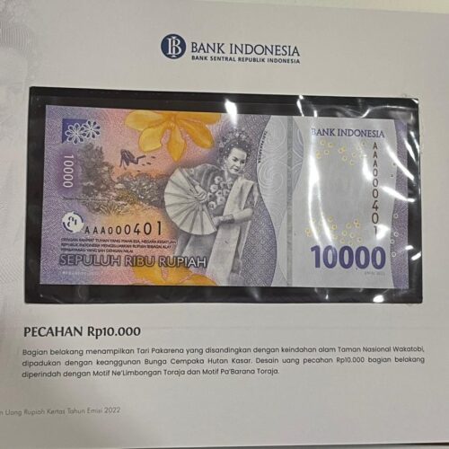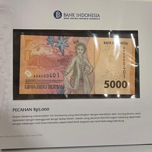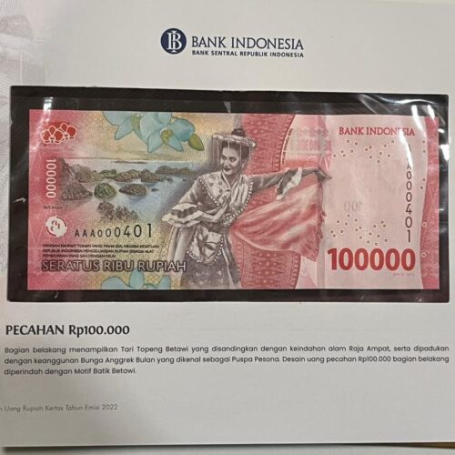 [LOT 34 NA #83] INDONESIA, 1.000-100.000 RUPIAH AAA WITH ALL SAME SERIAL NUMBER BI 2022 SERIAL # AAA000401