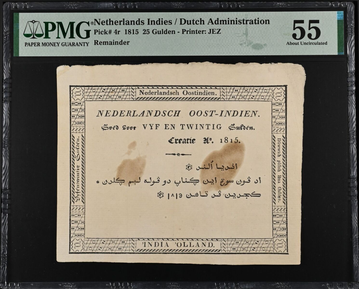 [LOT 437 NA #71] SCARCE NETHERLANDS INDIES, 25 GULDEN DUTCH ADMINISTRATION PMG ABOUT UNC 55 1815
