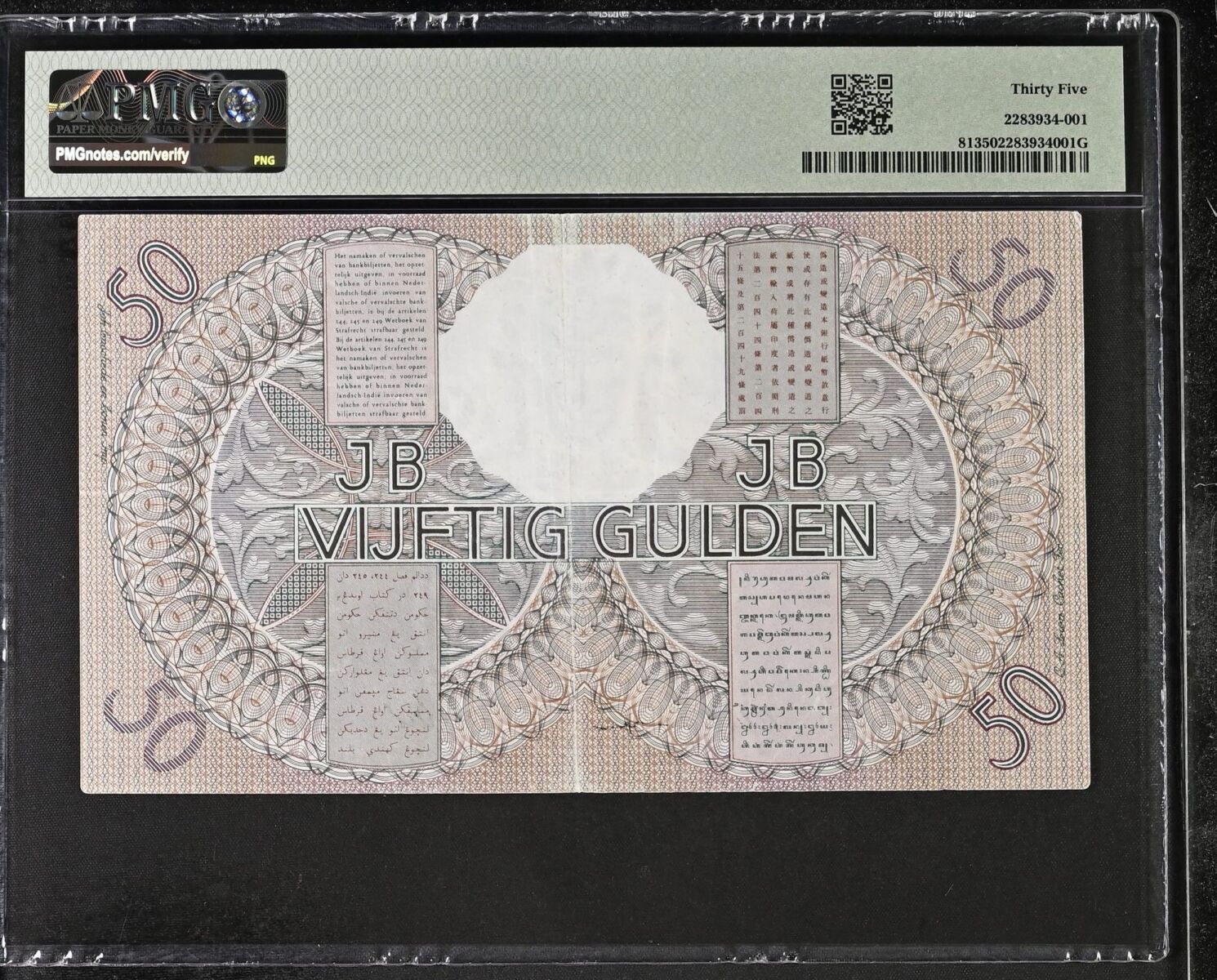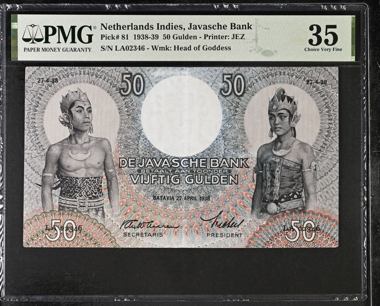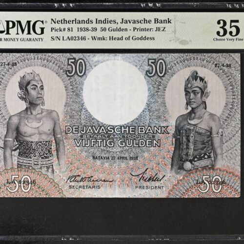 [LOT 450 NA#64] NETHERLAND INDIES, 50 GULDEN WAYANG PMG CHOICE VERY FINE 35 1938 SERIAL # LA02346