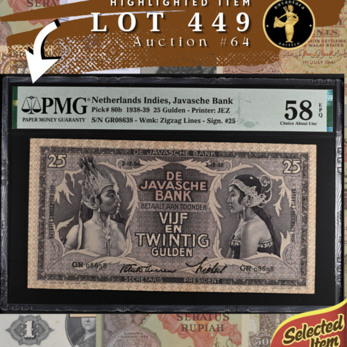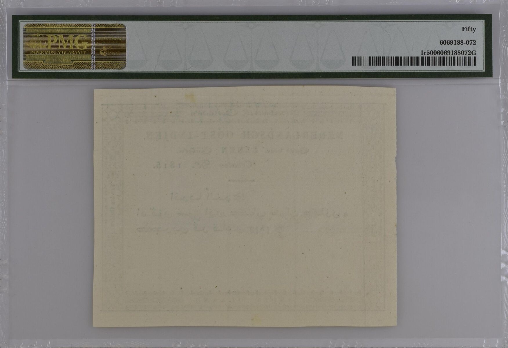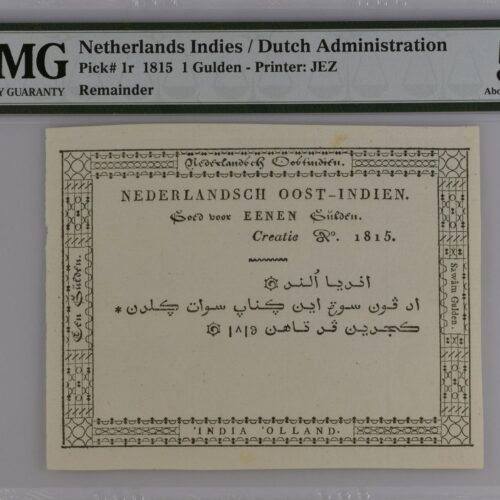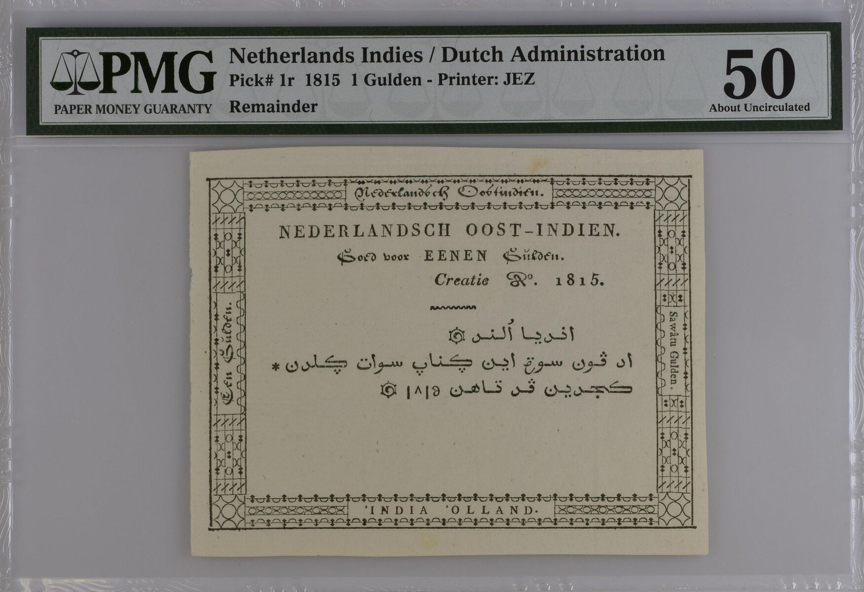 [LOT 458 NA #64] SCARCE NETHERLANDS INDIES, 1 GULDEN DUTCH ADMINISTRATION PMG ABOUT UNC 50 1815