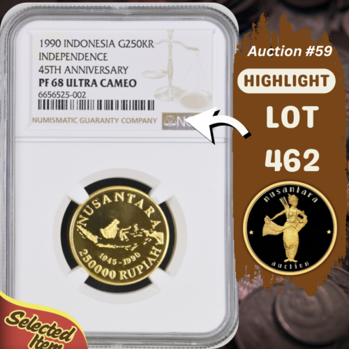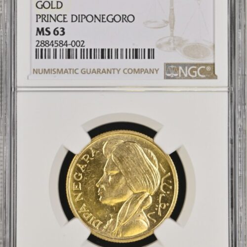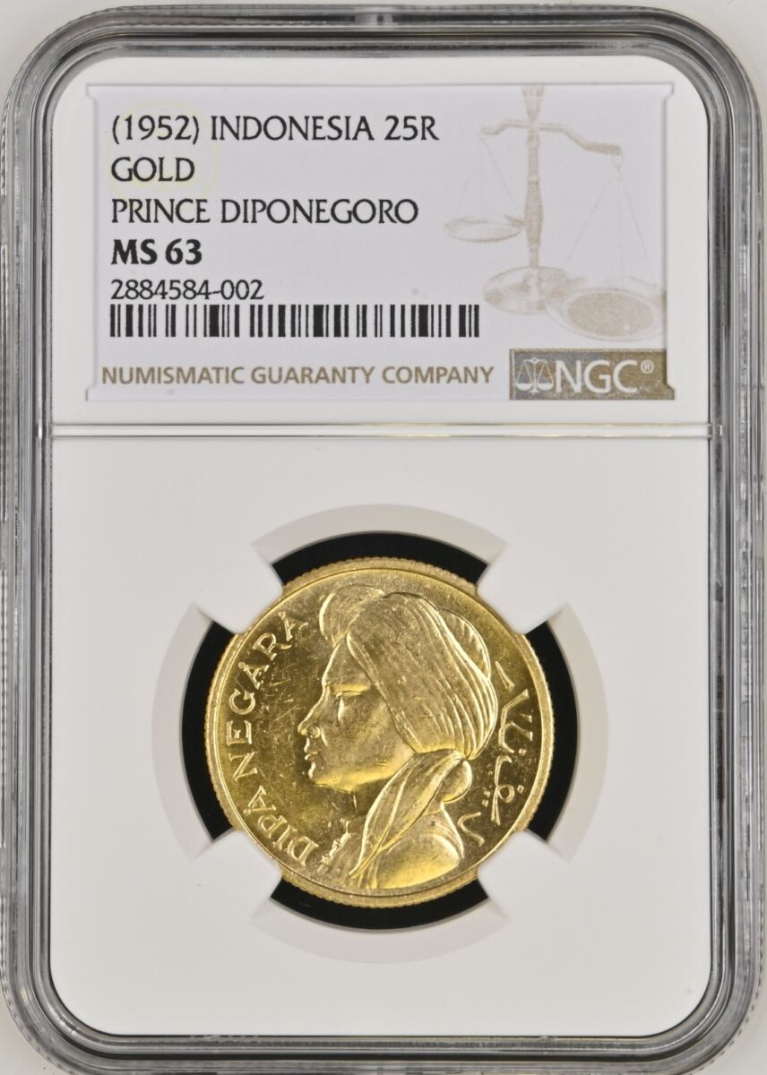 [LOT 461 NA #59] INDONESIA, 25R GOLD COIN PRINCE DIPONEGORO NGC MS 63 1952