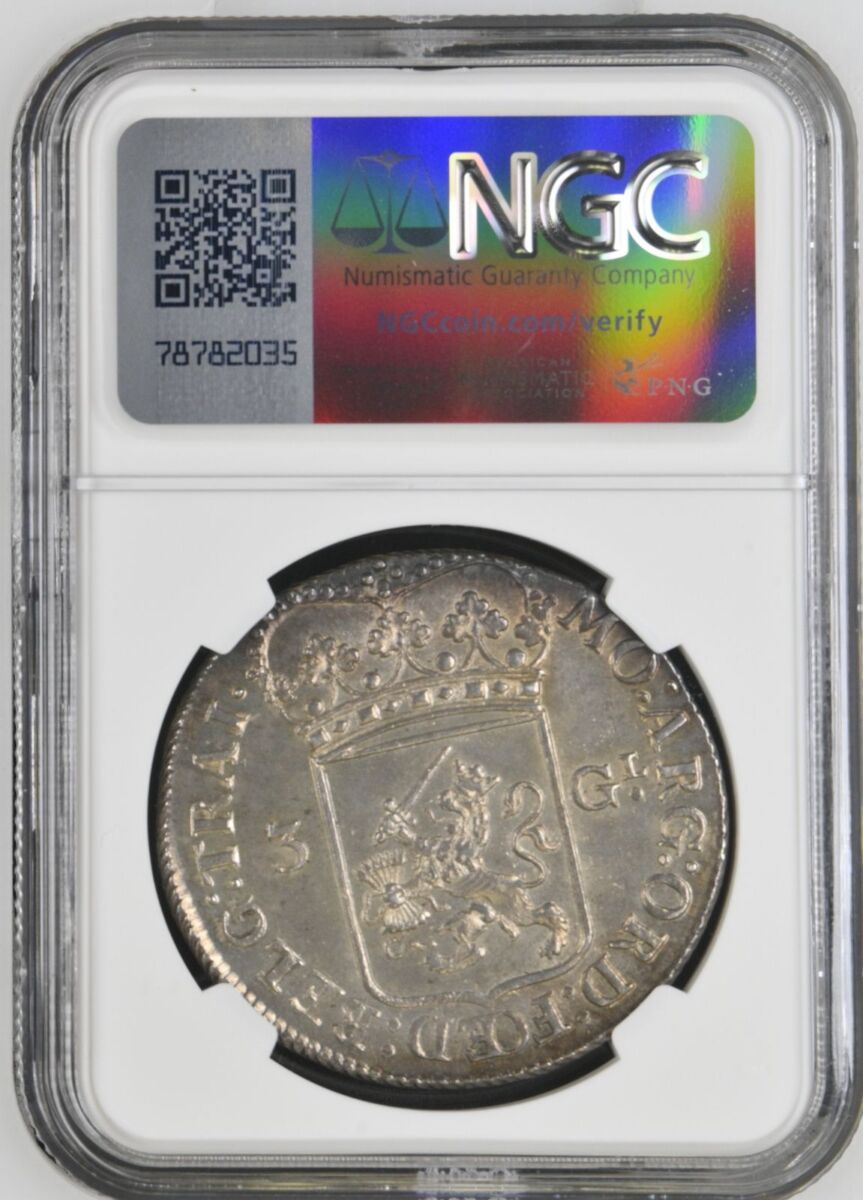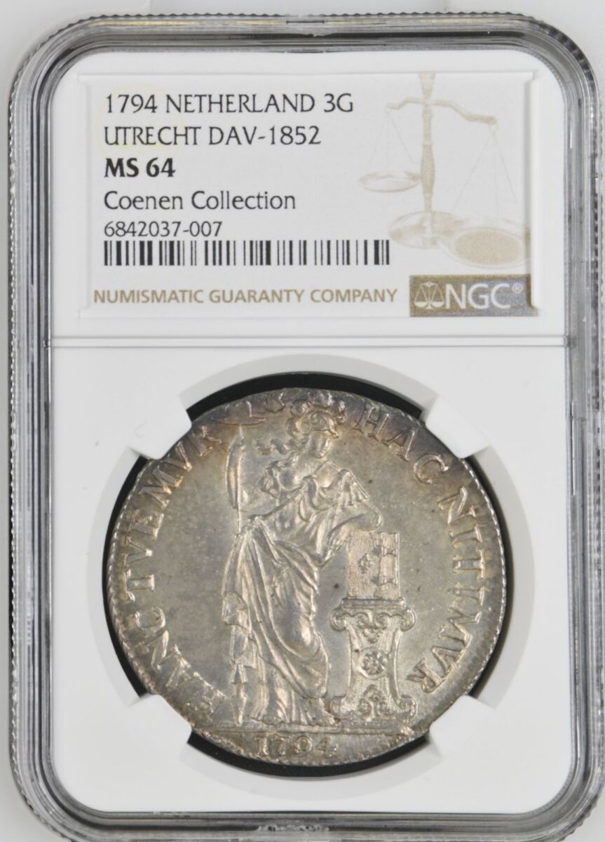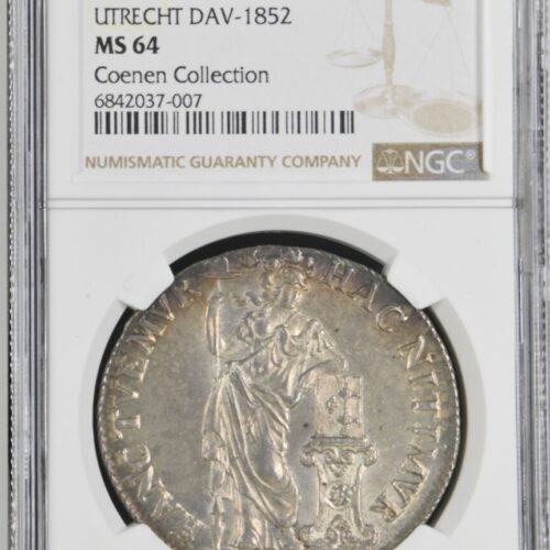 [LOT 513 NA#71] TOP POP RARE NETEHRLAND, 3 GULDEN UTRECHT DV-1852 NGC MS 64 1974