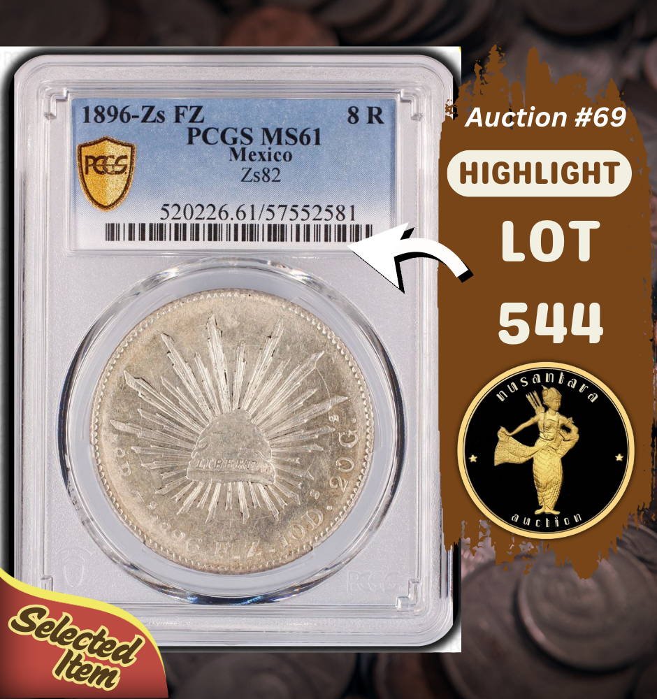 [LOT 544 NA#69] MEXICO, 8 REALS ZS82 PCGS MS61 1896-ZS FZ