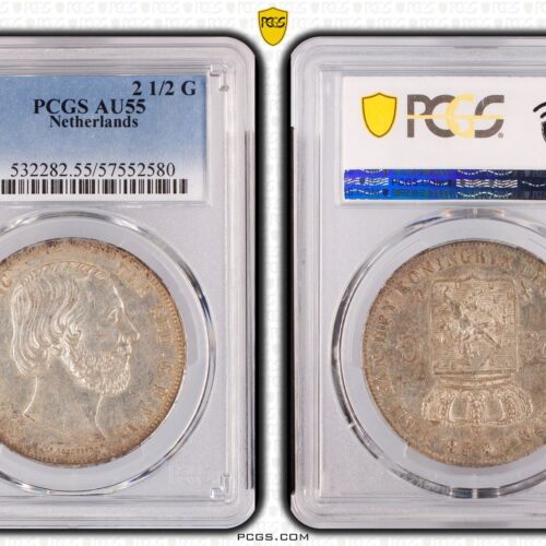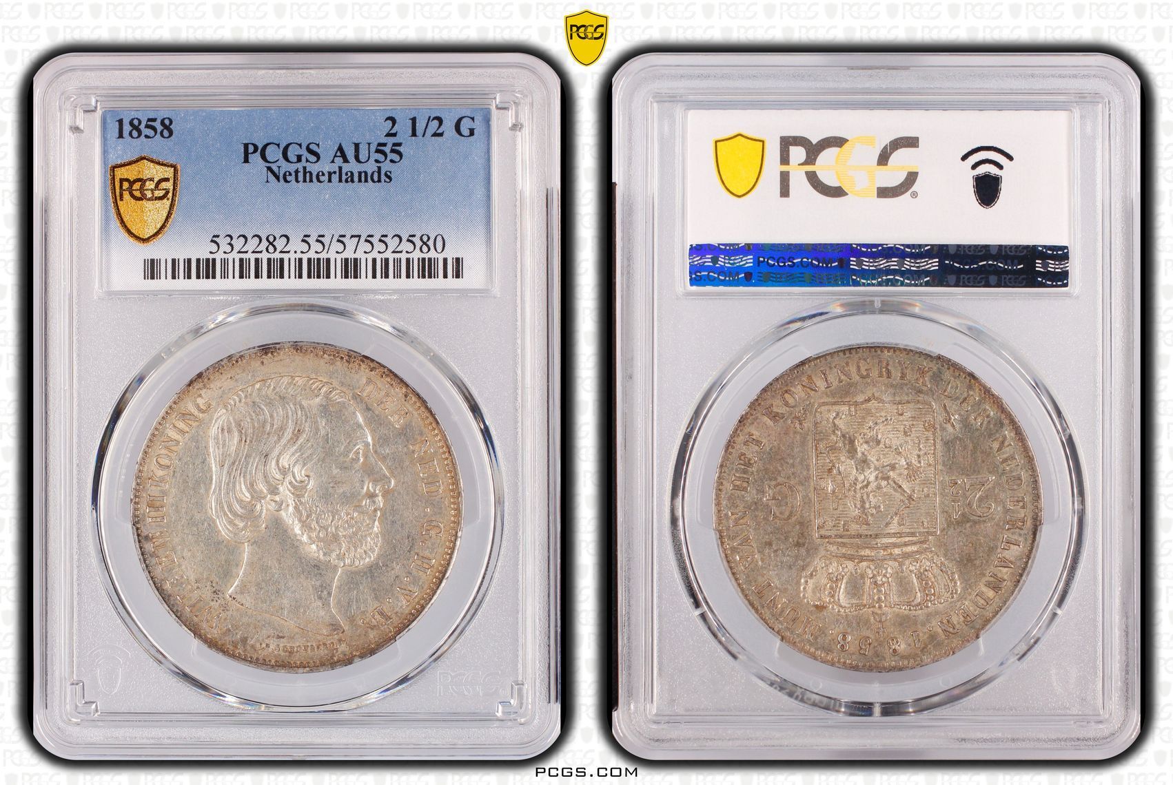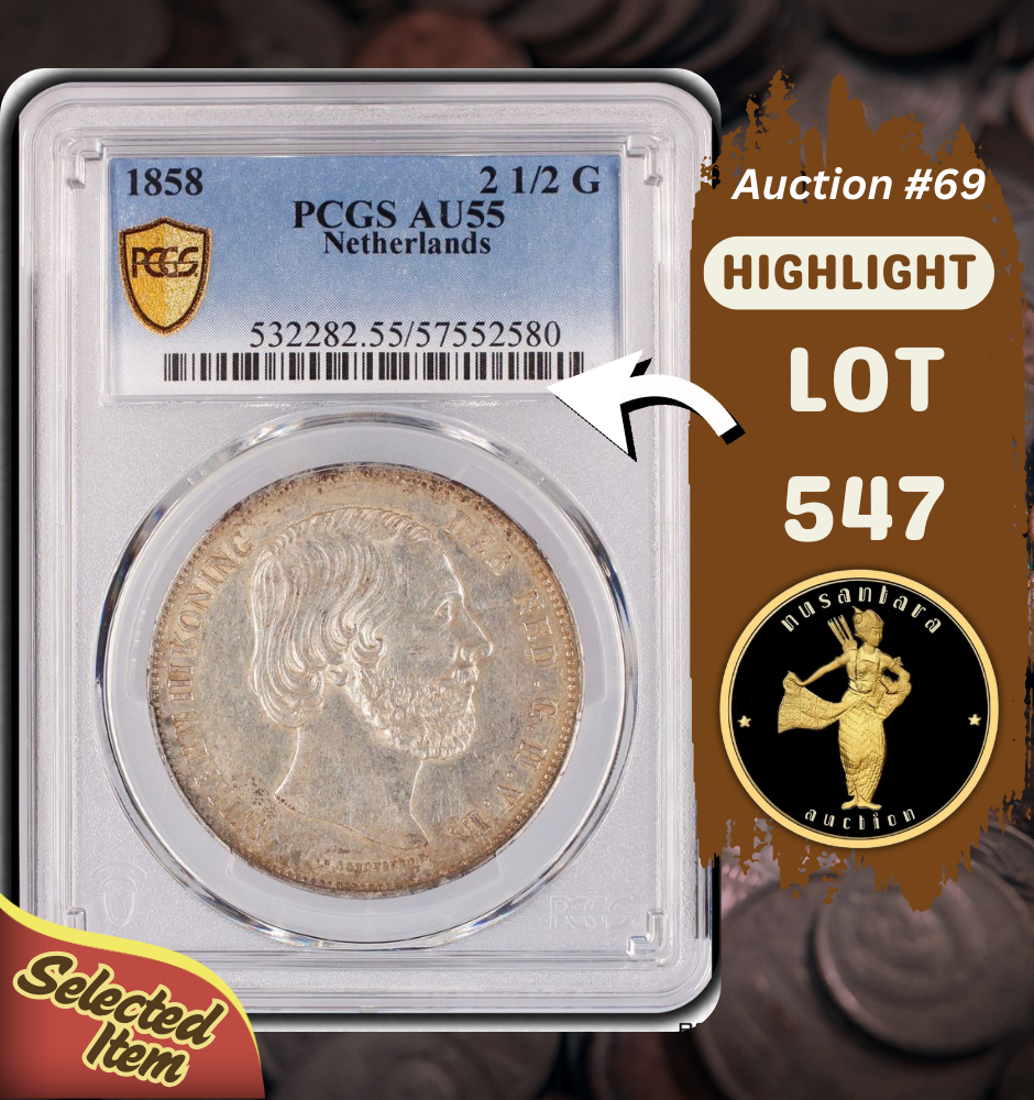 [LOT 547 NA#69] NETHERLANDS INDIES, 2 1/2 GULDEN PCGS AU55 1858